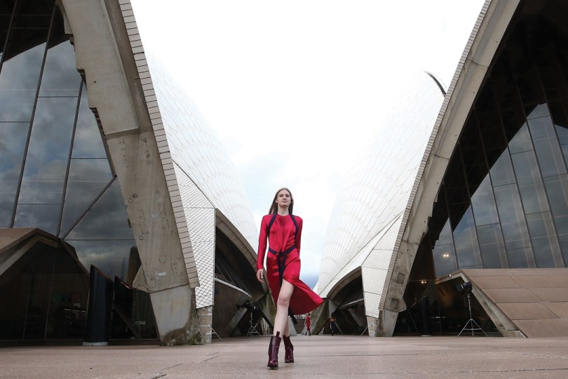 SYDNEY, AUSTRALIA – MAY 14: A model walks the runway during the Mercedes-Benz Presents Dion Lee show at Mercedes-Benz Fashion Week Resort 18 Collections at the Sydney Opera House on May 14, 2017 in Sydney, Australia. (Photo by Mark Metcalfe/Getty Images)
